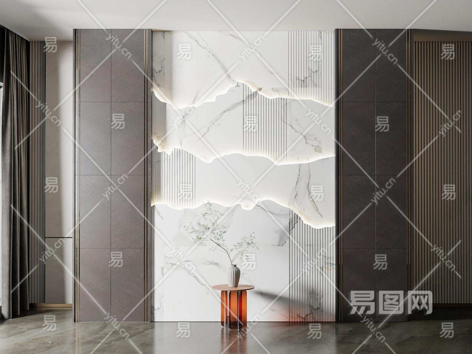 现代背景墙3D模型下载