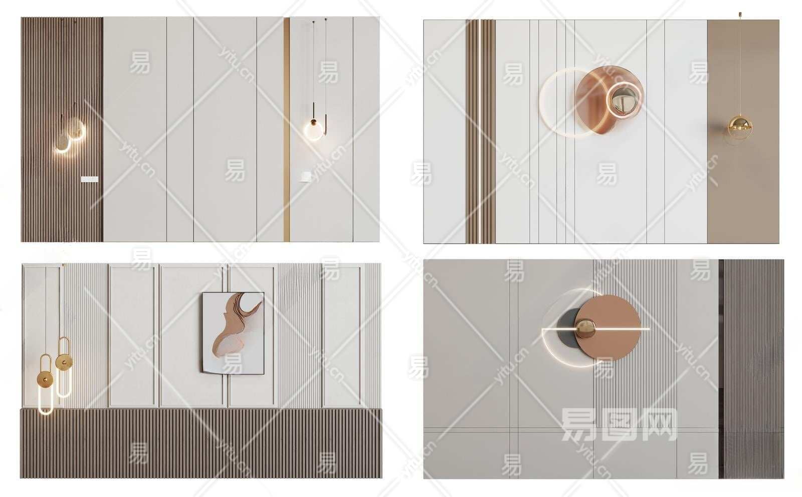 现代背景墙组合3D模型下载