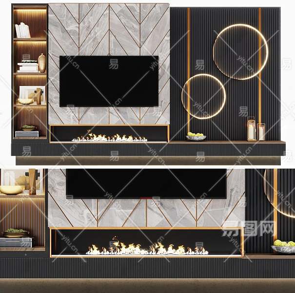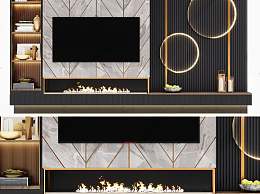 现代电视背景墙3D模型下载