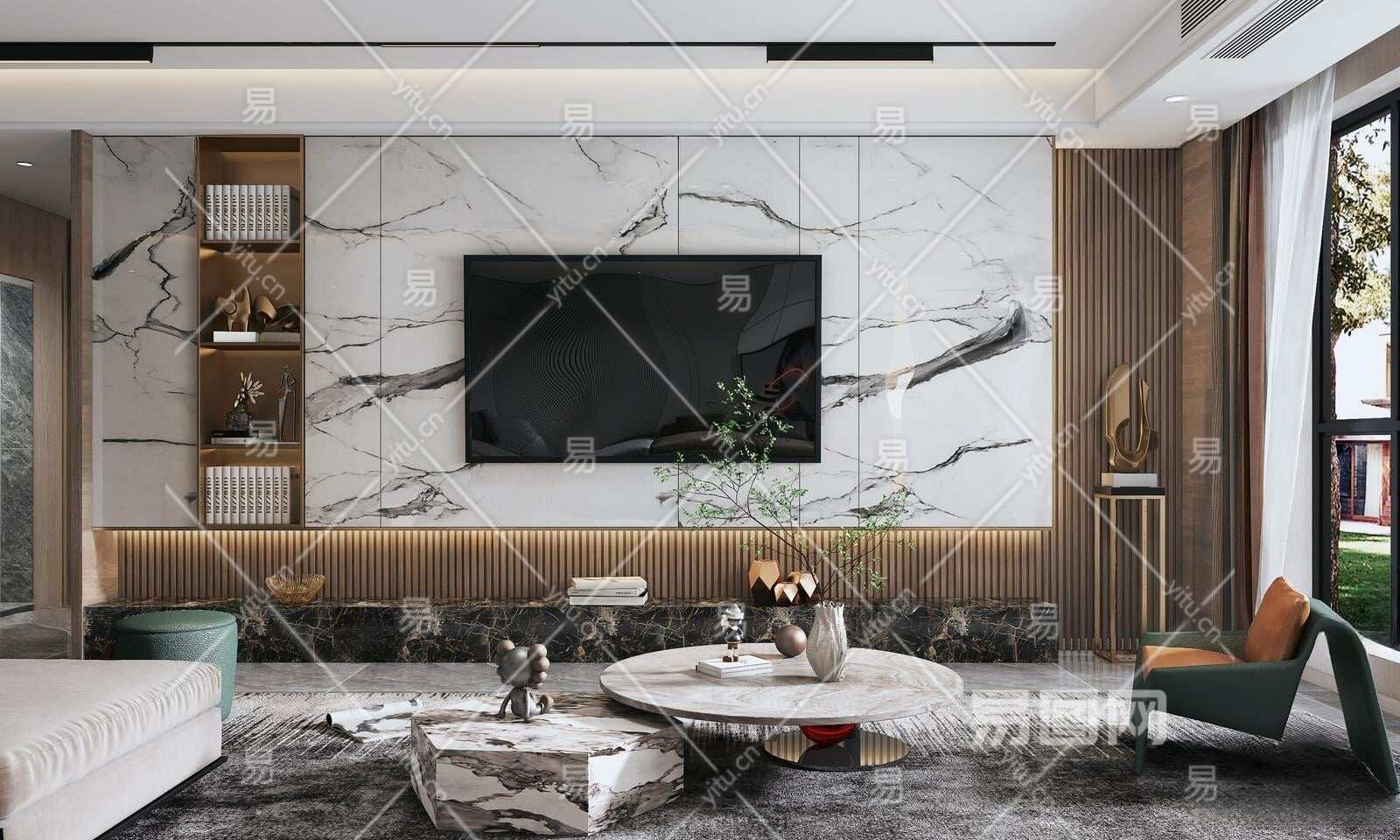 现代电视背景3D模型下载