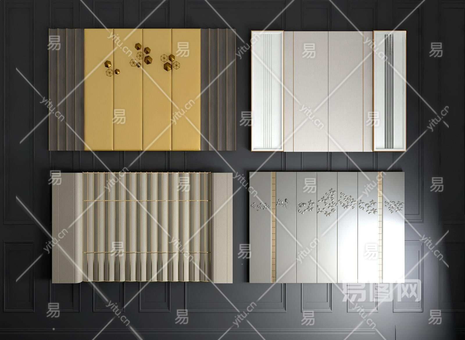 现代软包背景墙3D模型下载