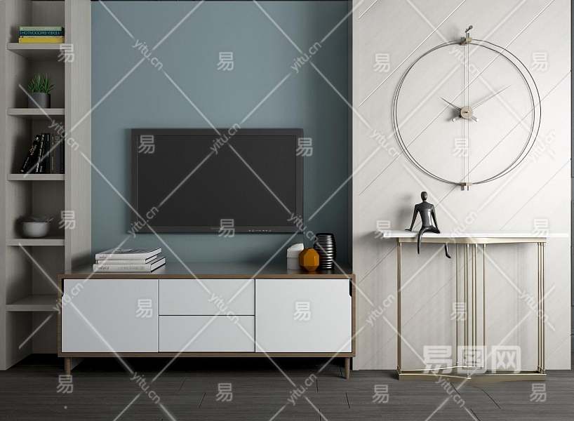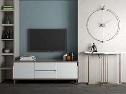 现代简约电视背景墙电视柜金属端景条案组合3D模型下载
