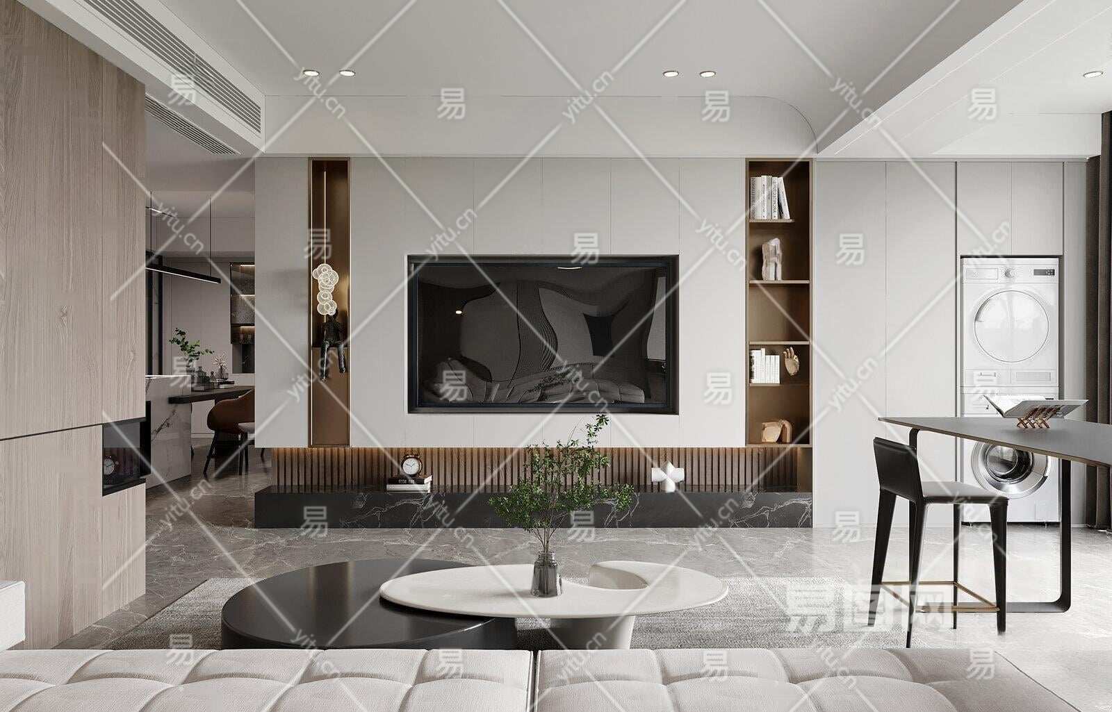 现代电视背景3D模型下载