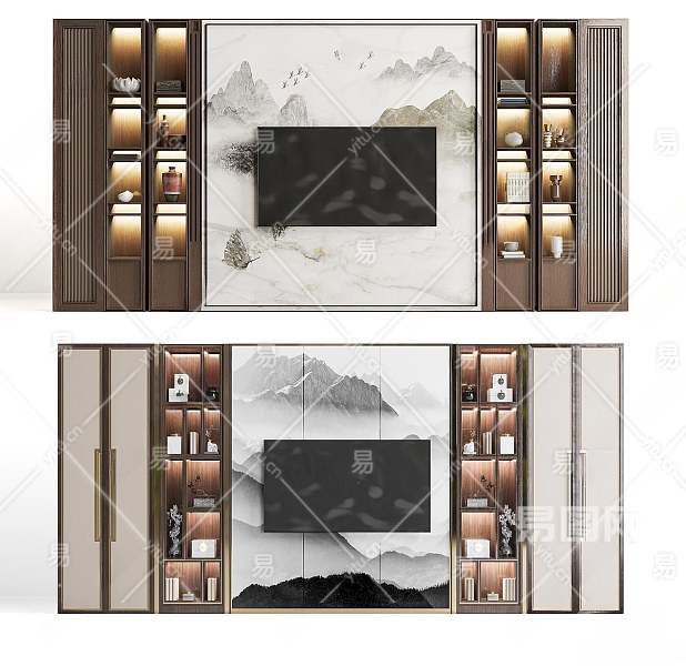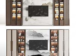 新中式电视背景3D模型下载