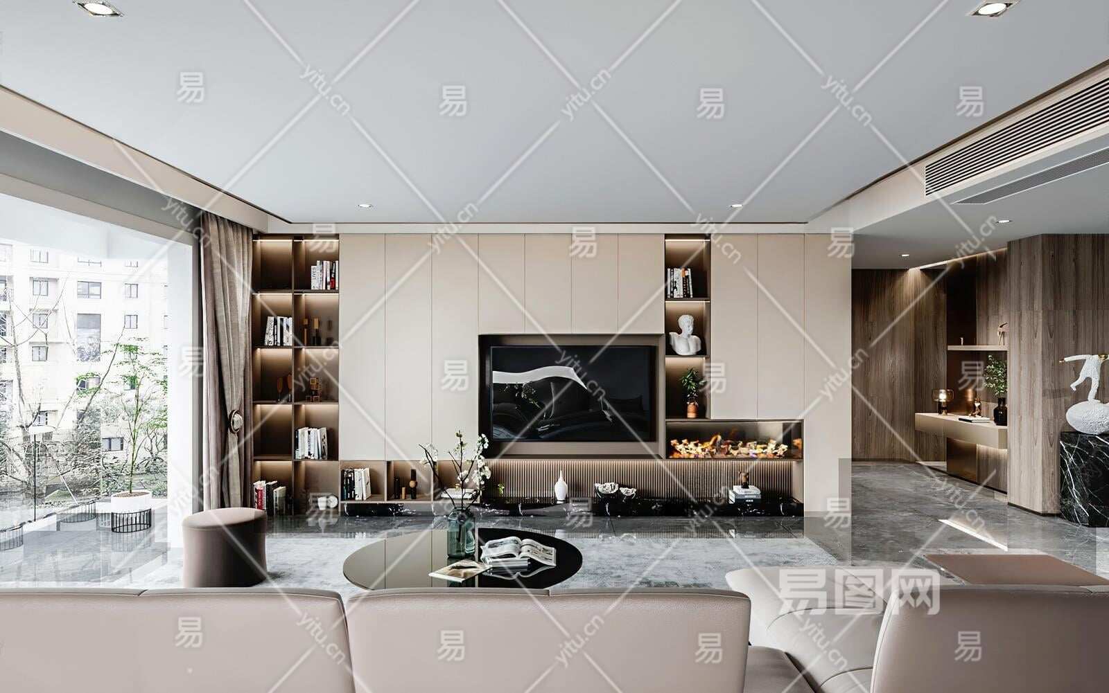 现代电视背景3D模型下载