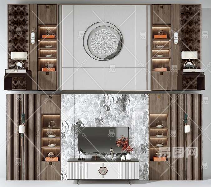 当前的位置:首页 > 3D模型 > 通用空间 > 背景墙 > 新中式电视背景墙3D模型下载