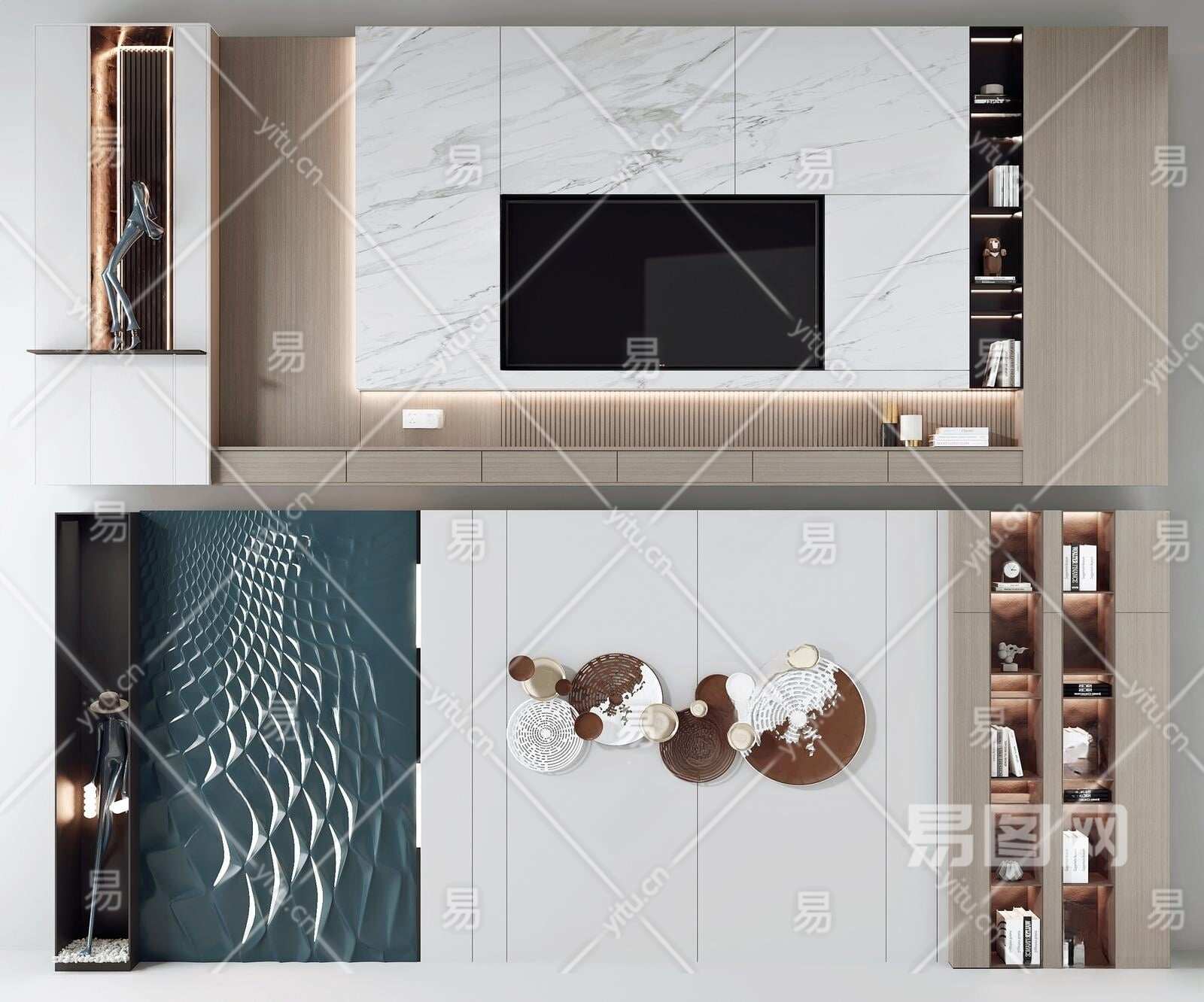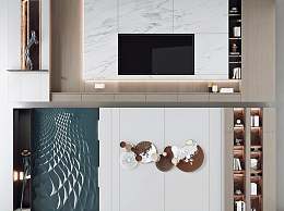 现代电视背景3D模型下载