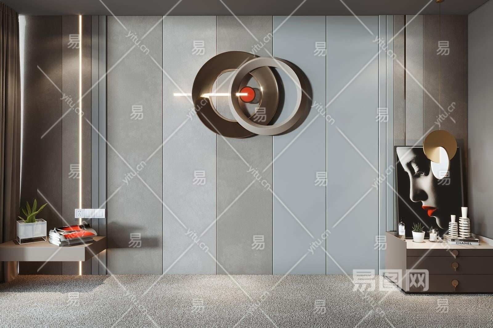 现代卧室床头背景墙3D模型下载