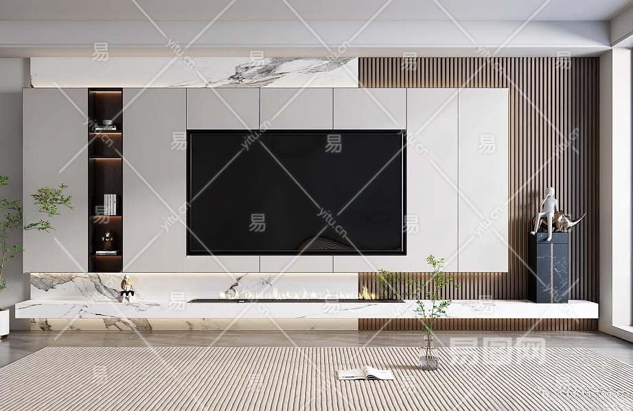 现代电视背景墙3D模型下载