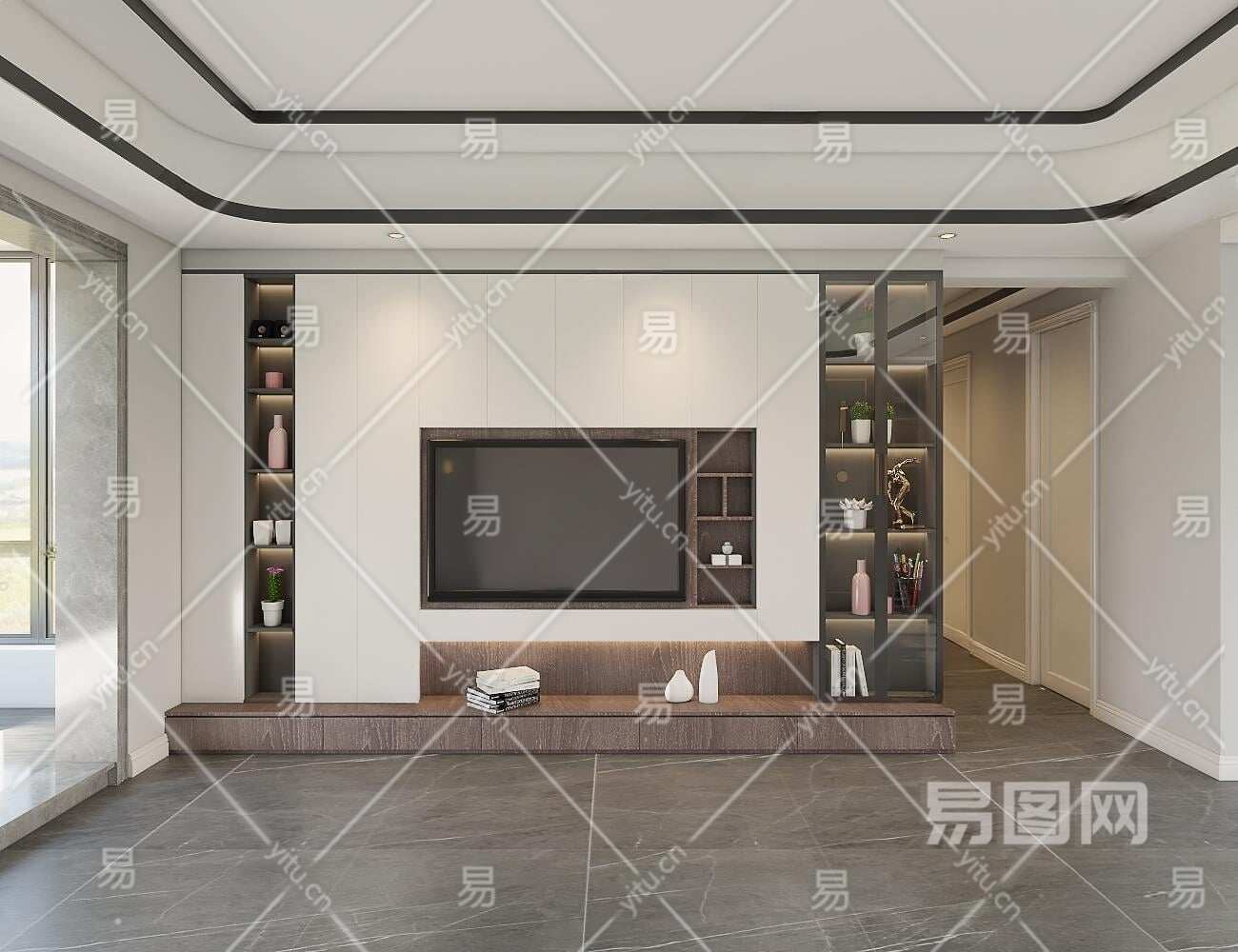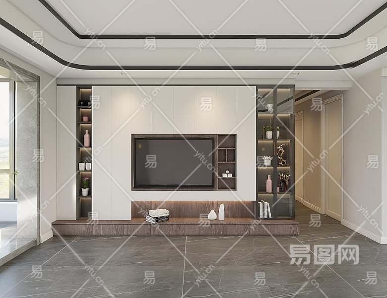 现代电视背景3D模型下载