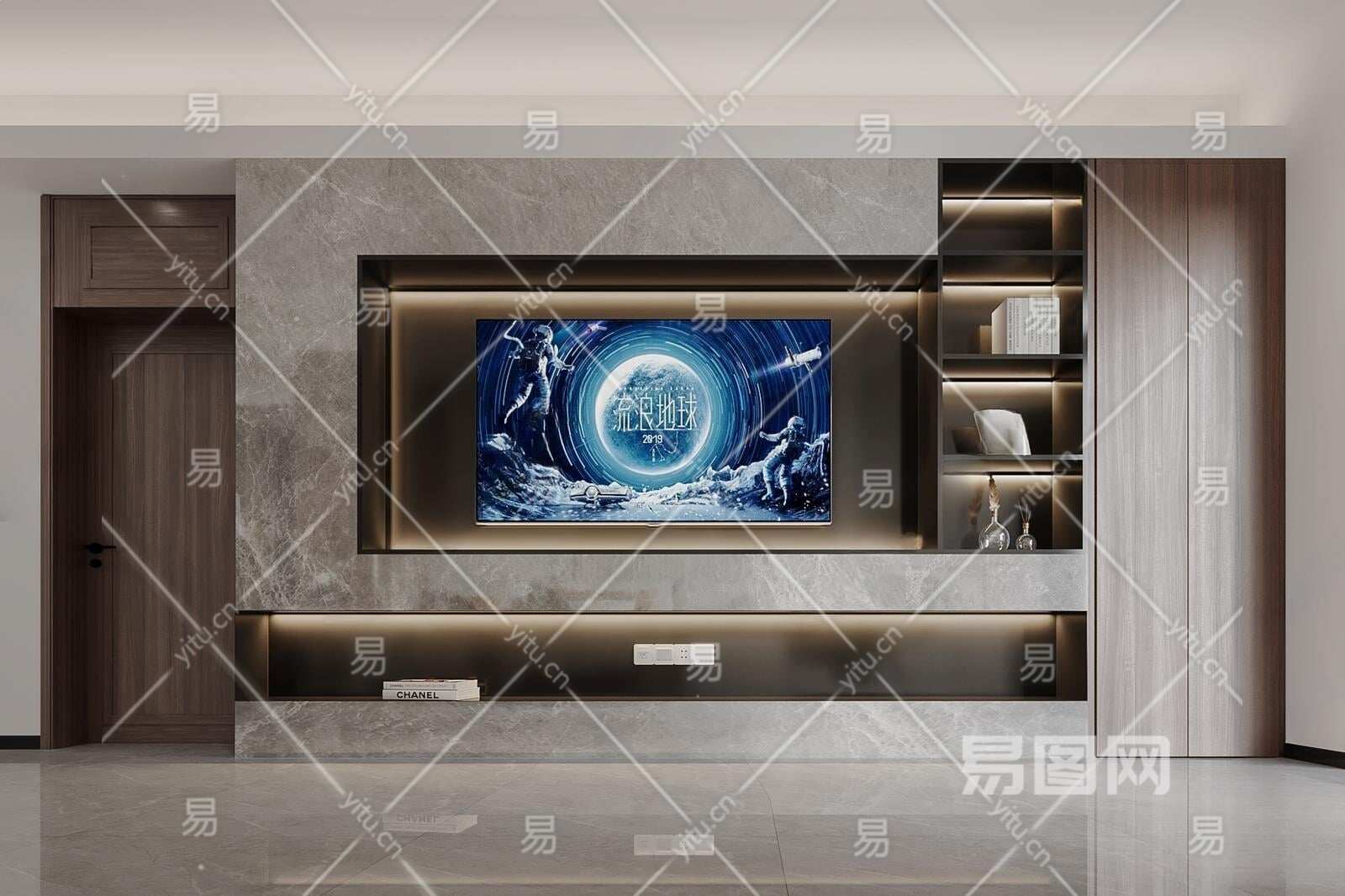 现代电视背景墙3D模型下载