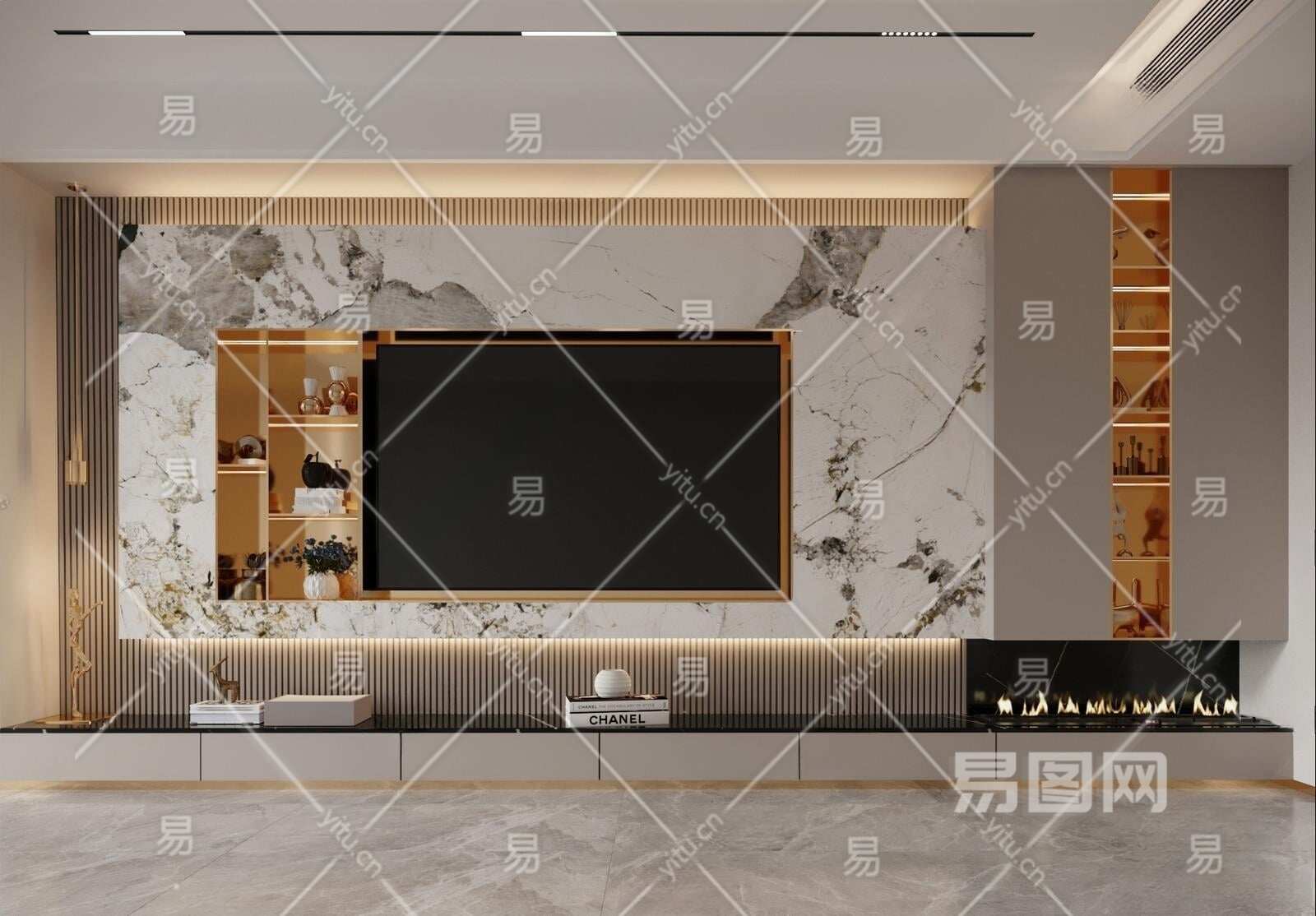 现代电视背景3D模型下载