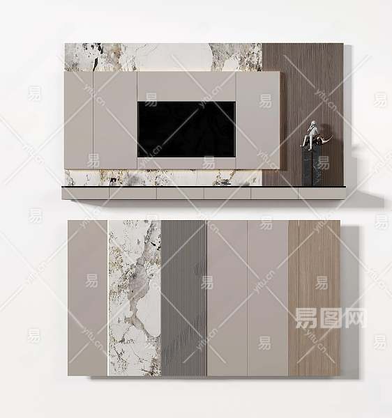 现代电视背景墙3D模型下载