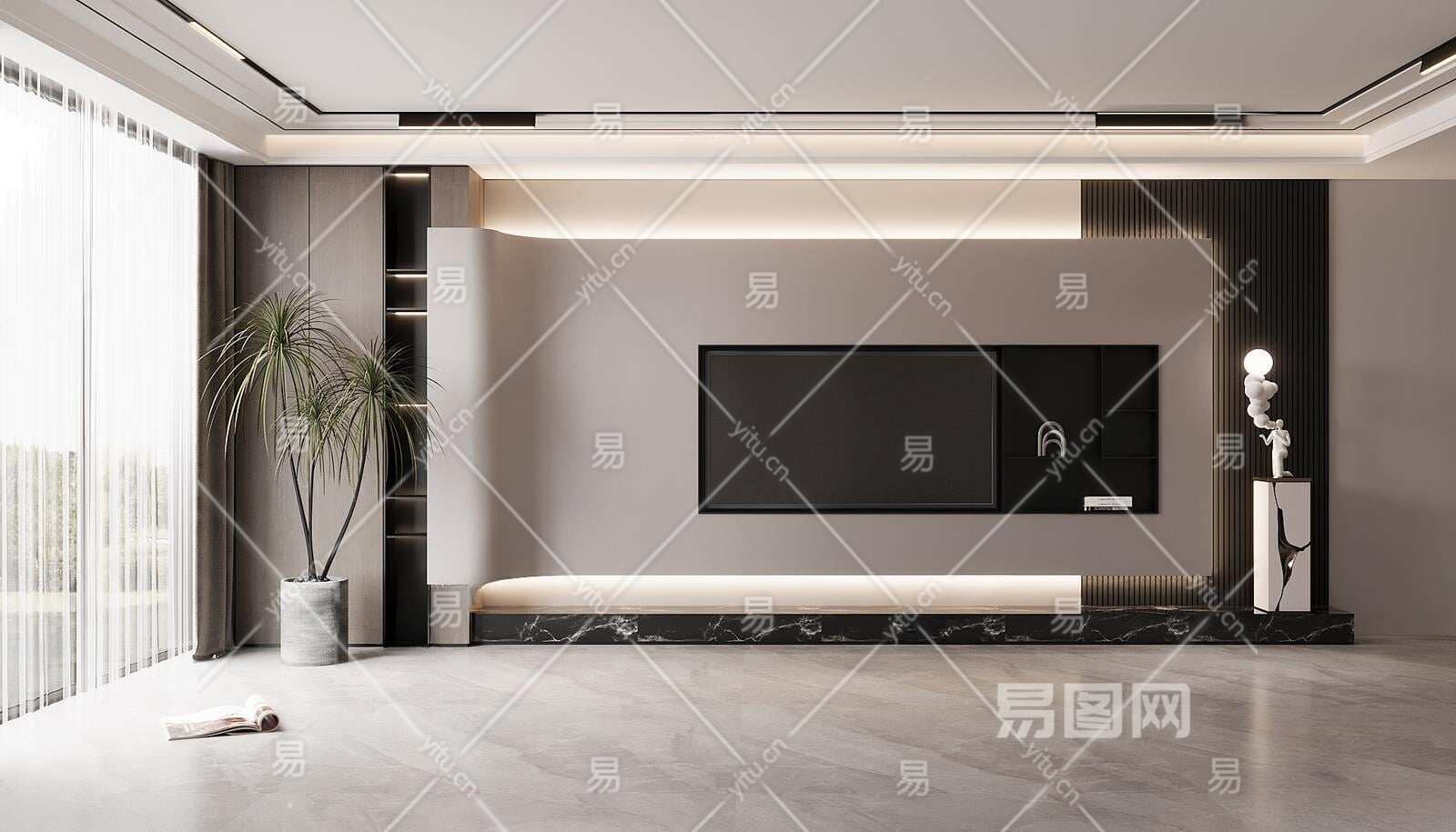 现代电视背景3D模型下载