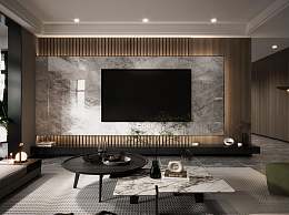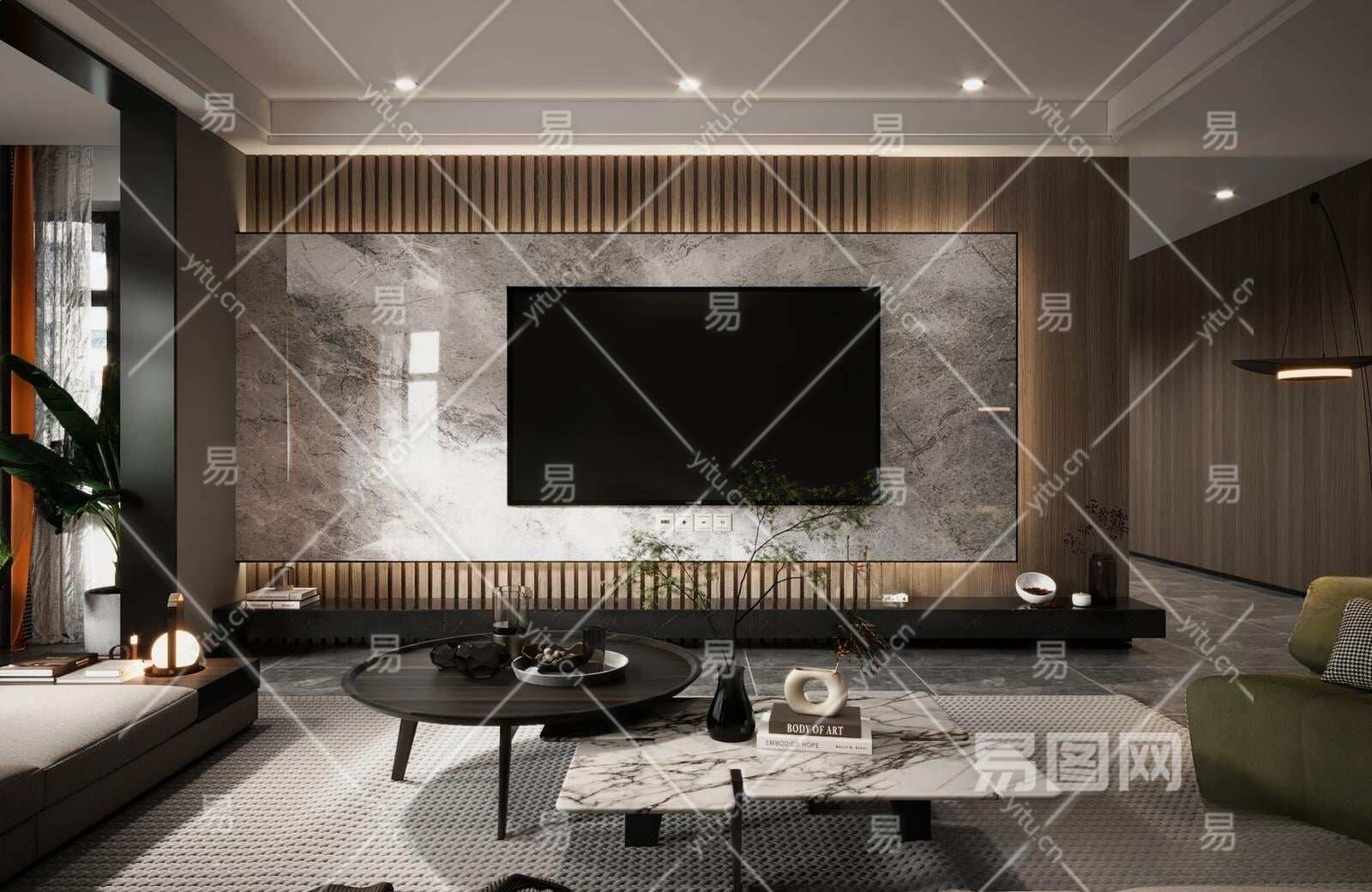 现代客厅电视背景墙3D模型下载
