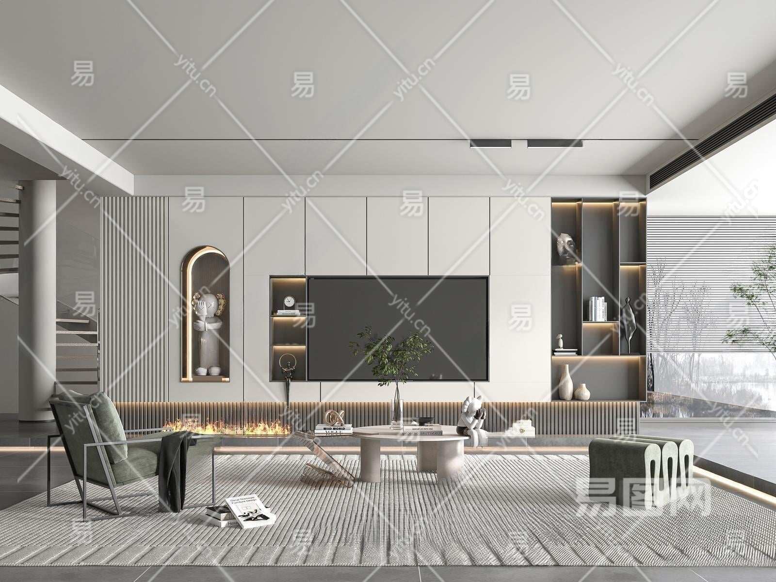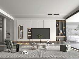 现代电视背景墙3D模型下载