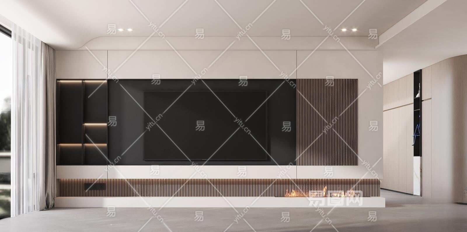 现代电视背景墙3D模型下载