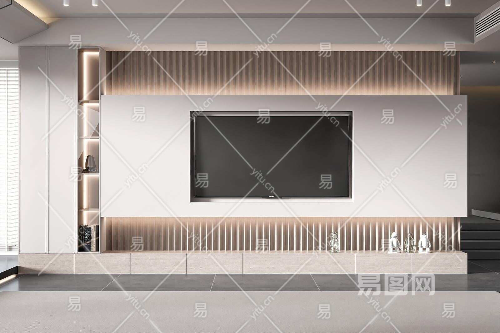 现代电视背景墙3D模型下载