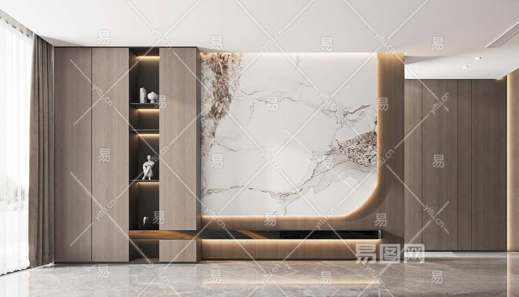 现代电视背景3D模型下载