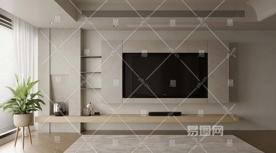 侘寂电视背景墙3D模型下载