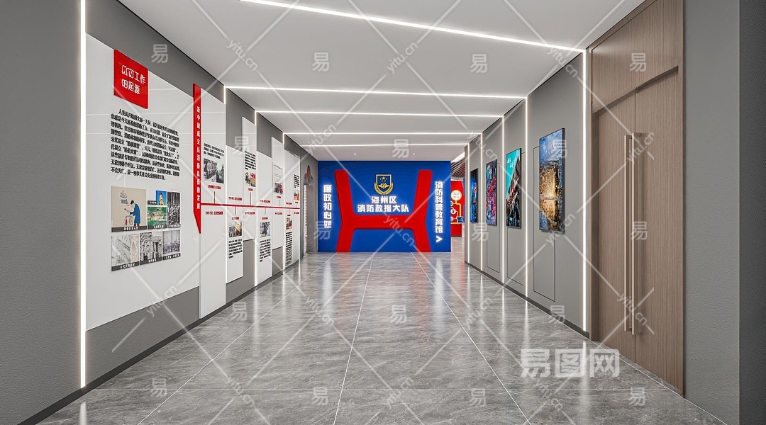 现代消防队党建展厅3D模型下载