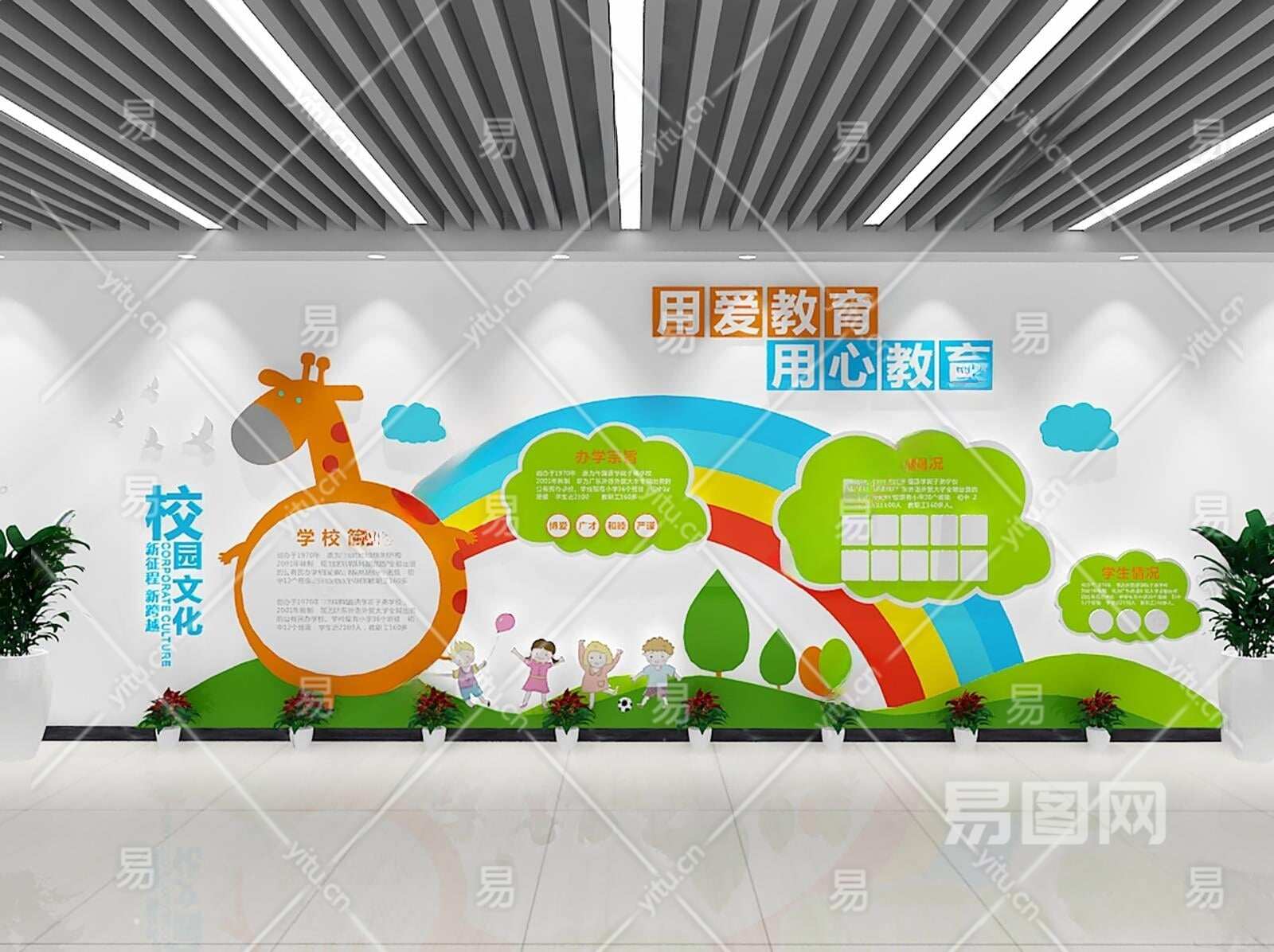 现代幼儿园文化墙3D模型下载