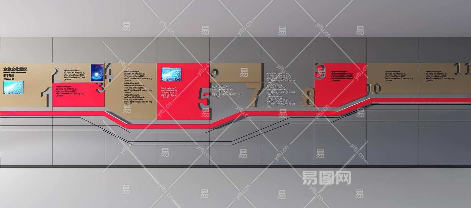现代企业文化墙面3D模型下载
