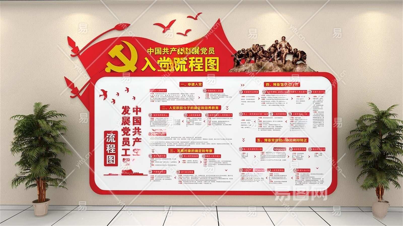 现代入党流程图文化墙3D模型下载