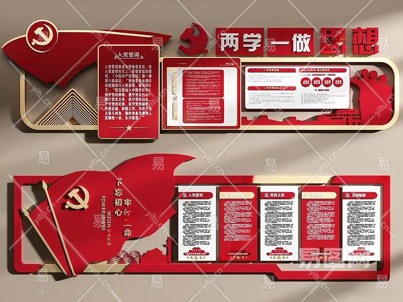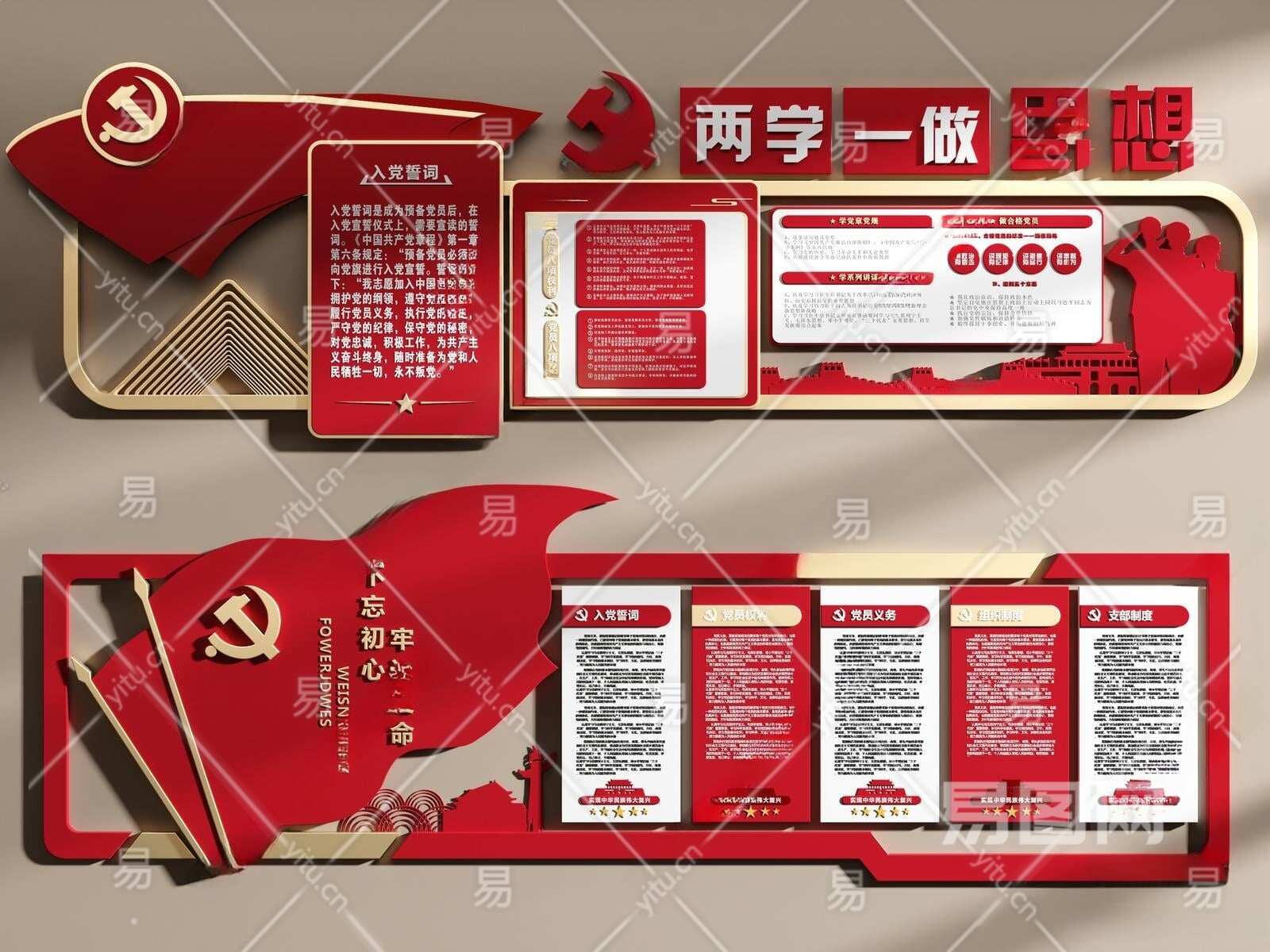 现代党建文化墙3D模型下载