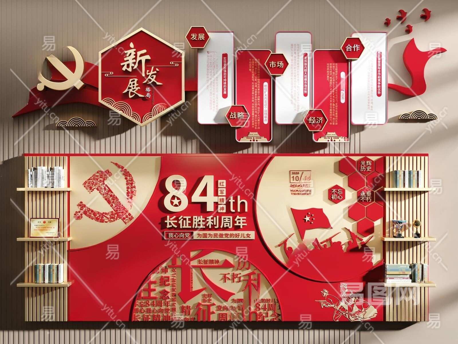 现代党建文化宣传墙3D模型下载