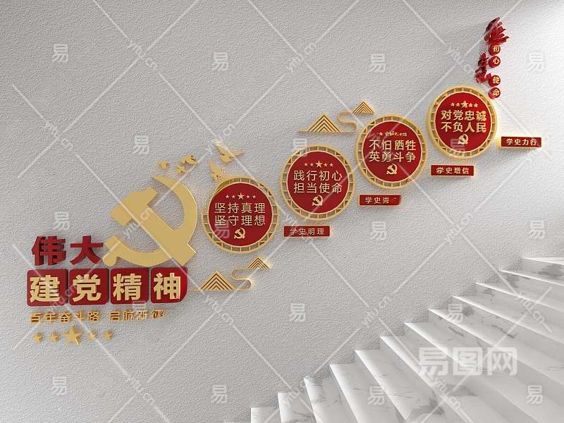 现代党建文化宣传墙3D模型下载