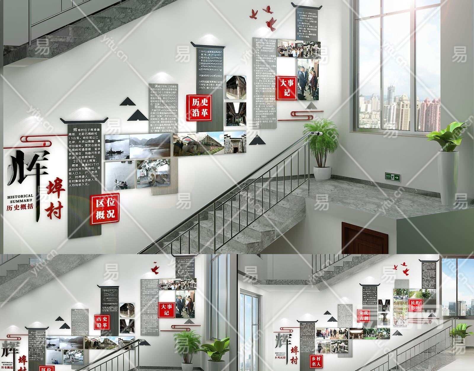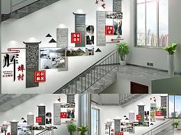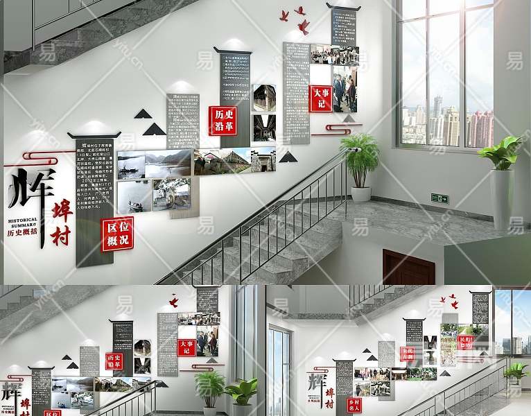 新中式党建楼梯文化墙3D模型下载