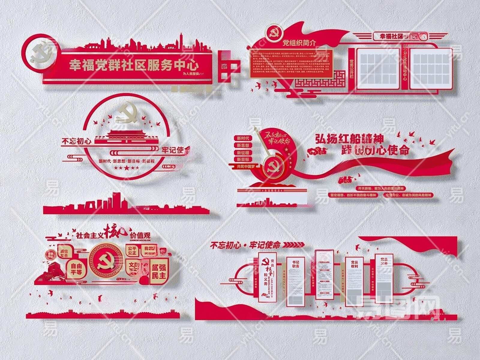 现代党建文化墙3D模型下载