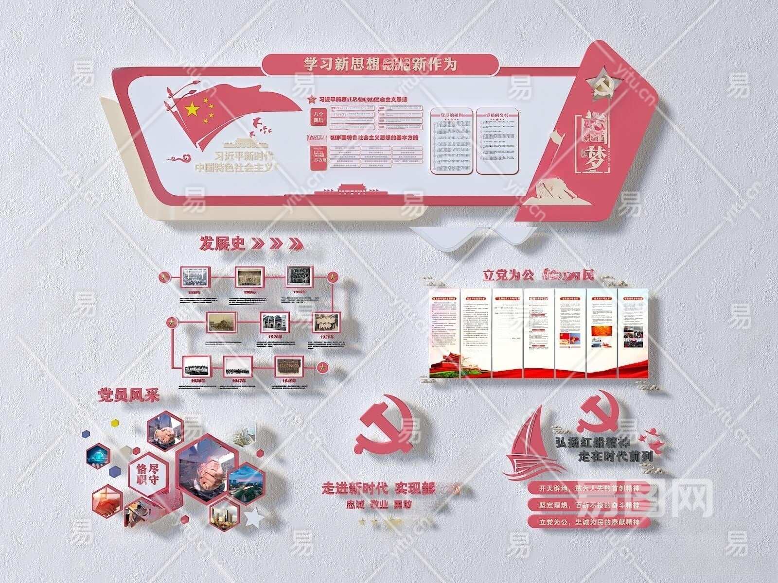 现代党建文化墙3D模型下载