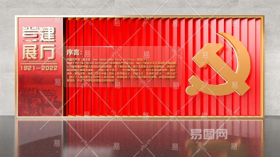 现代党建文化宣传墙3D模型下载