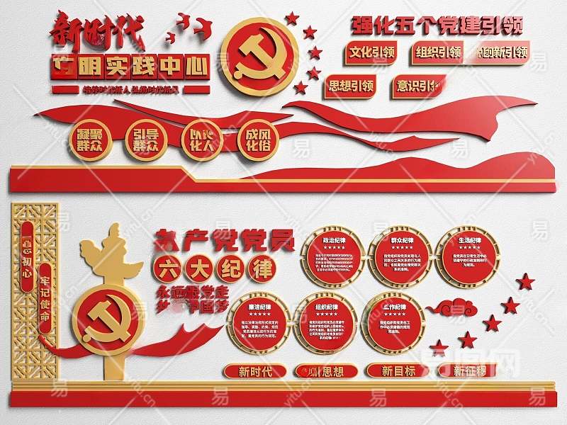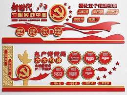 现代党建文化宣传墙3D模型下载