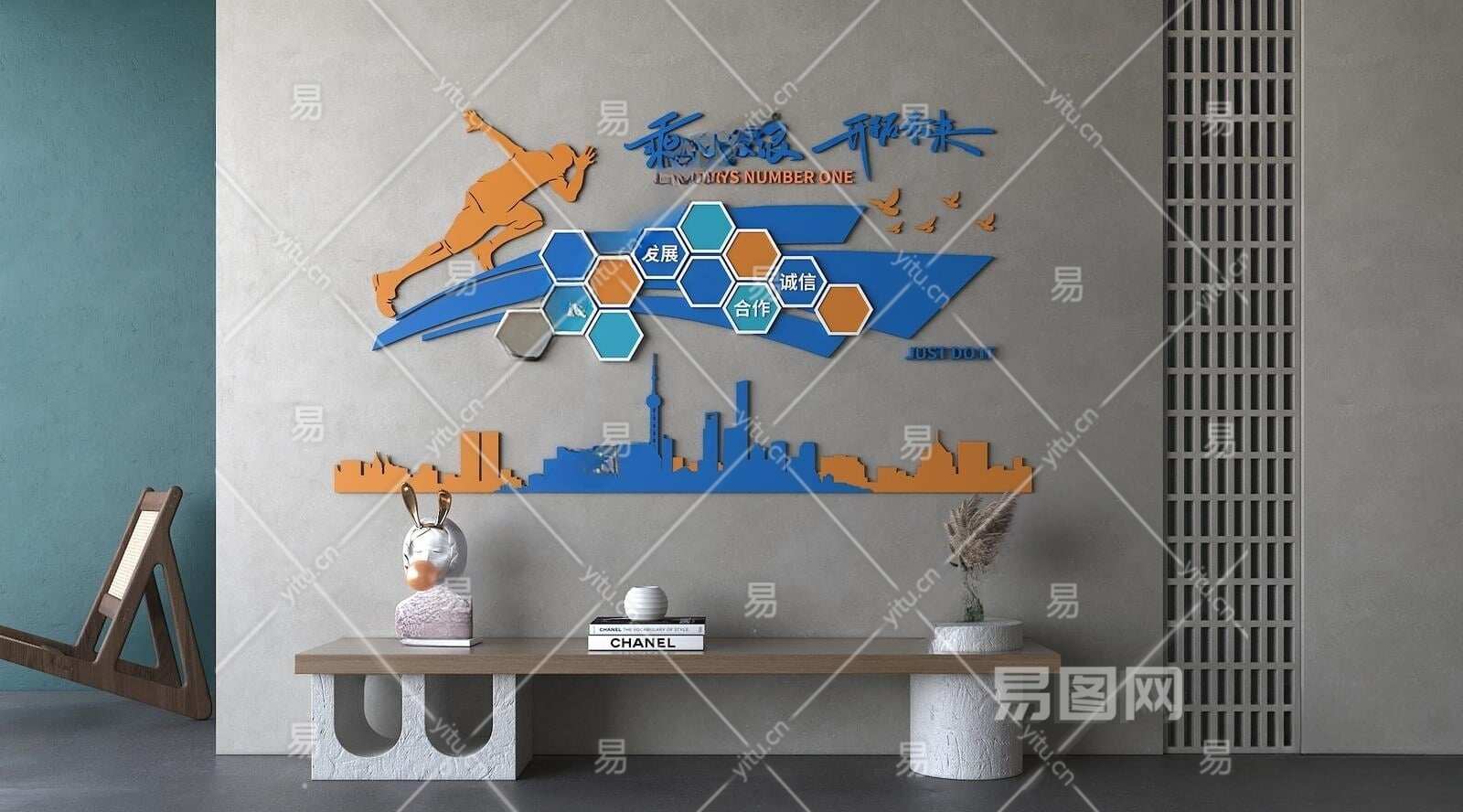 现代公司文化墙3D模型下载