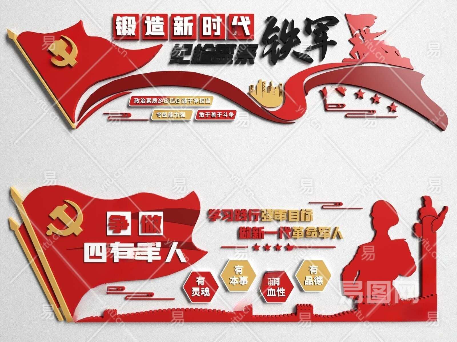 现代党建文化墙3D模型下载