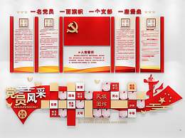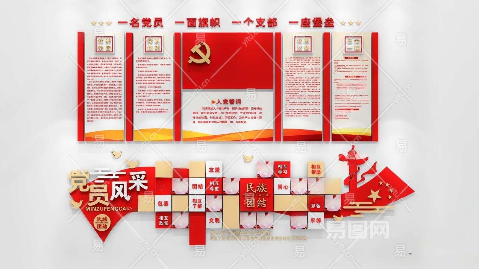 现代党建文化墙3D模型下载