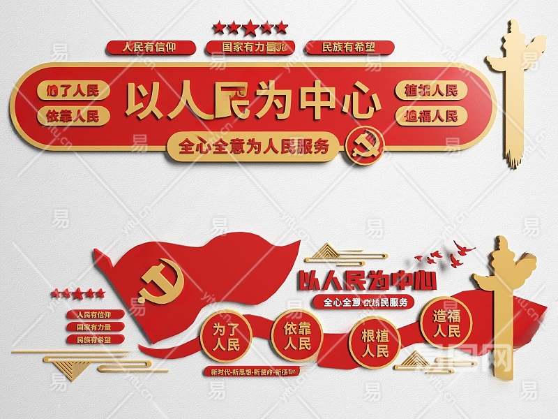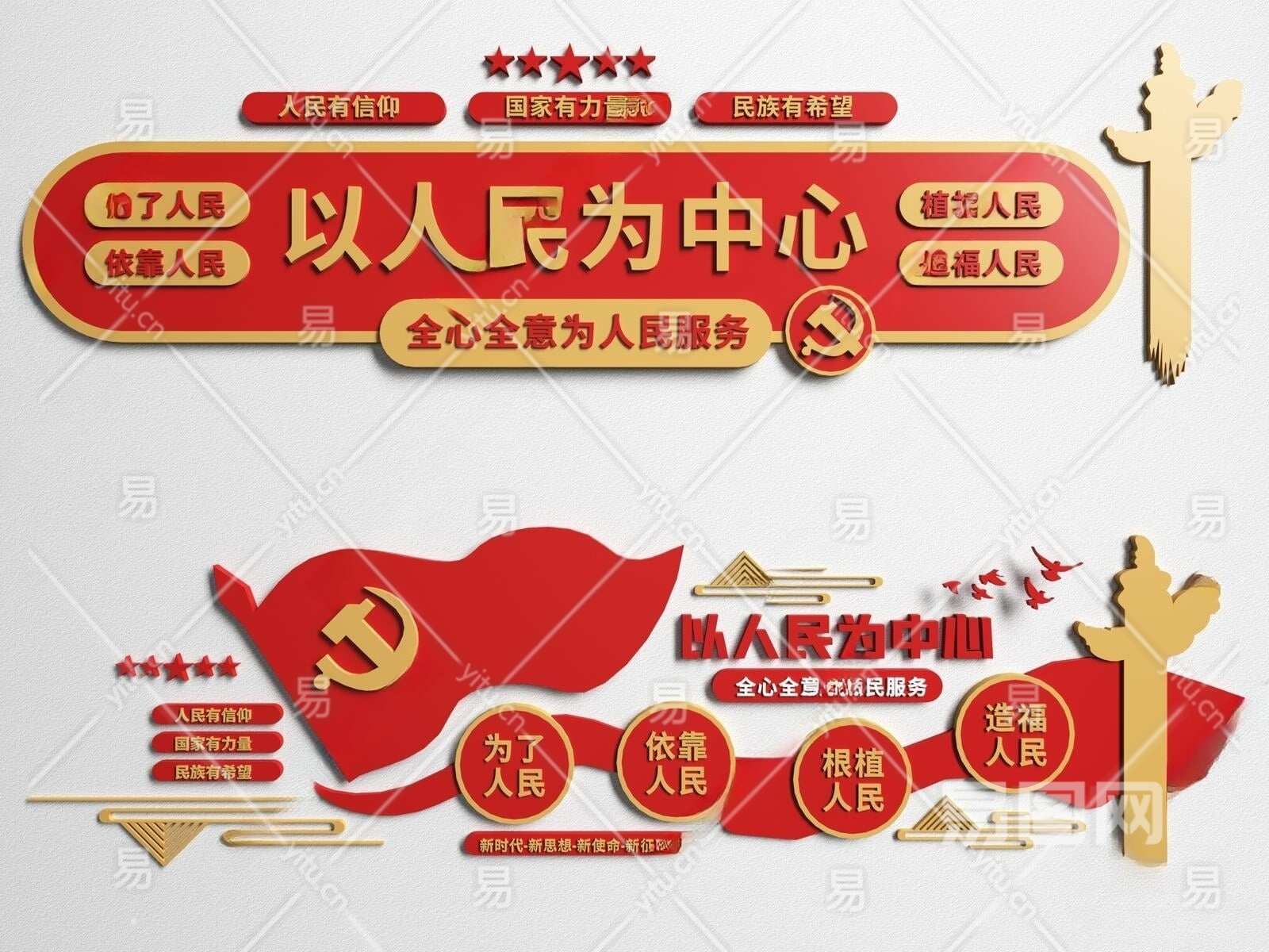 现代党建文化宣传墙3D模型下载