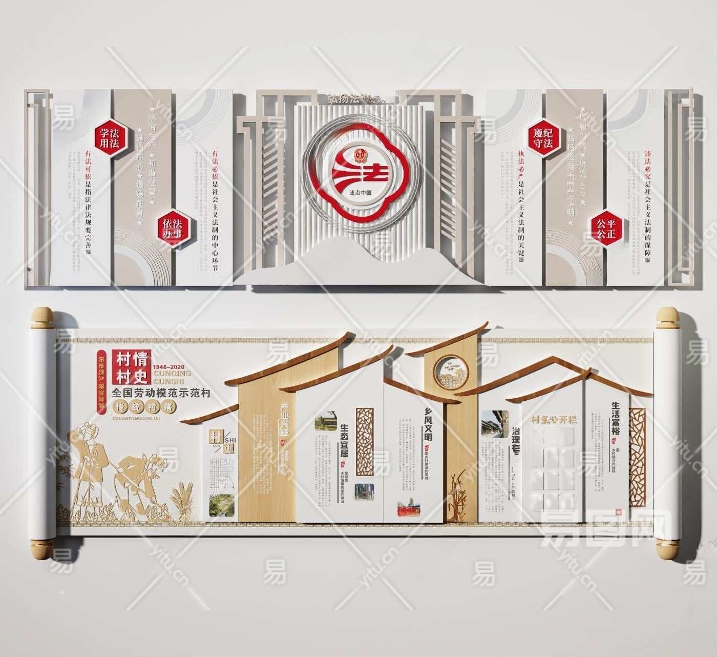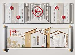 新中式党建文化宣传墙3D模型下载