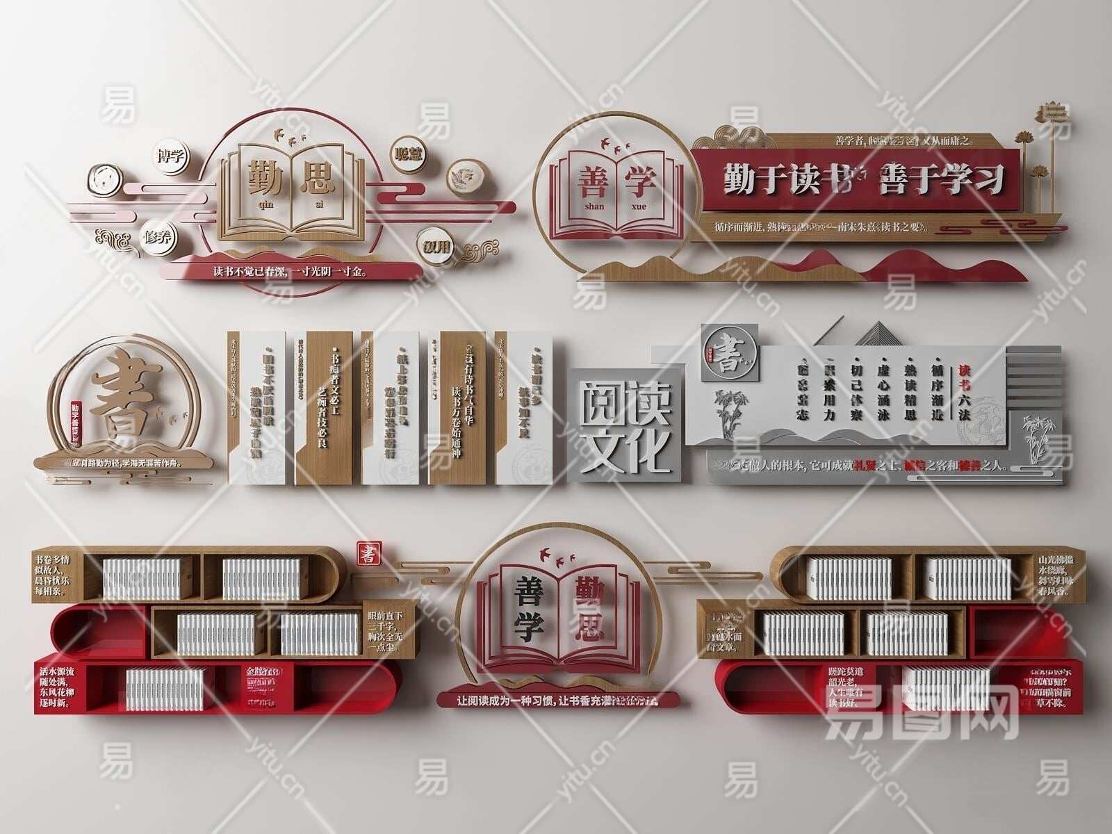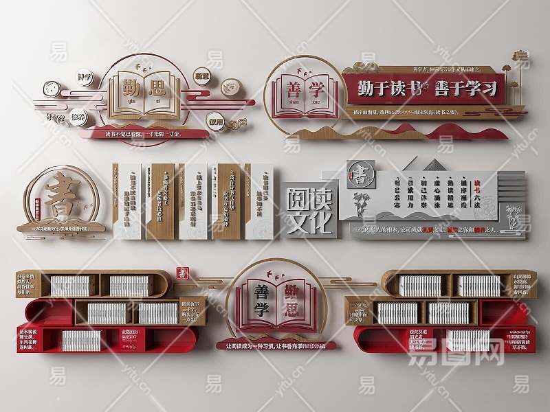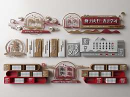 新中式学校文化墙3D模型下载
