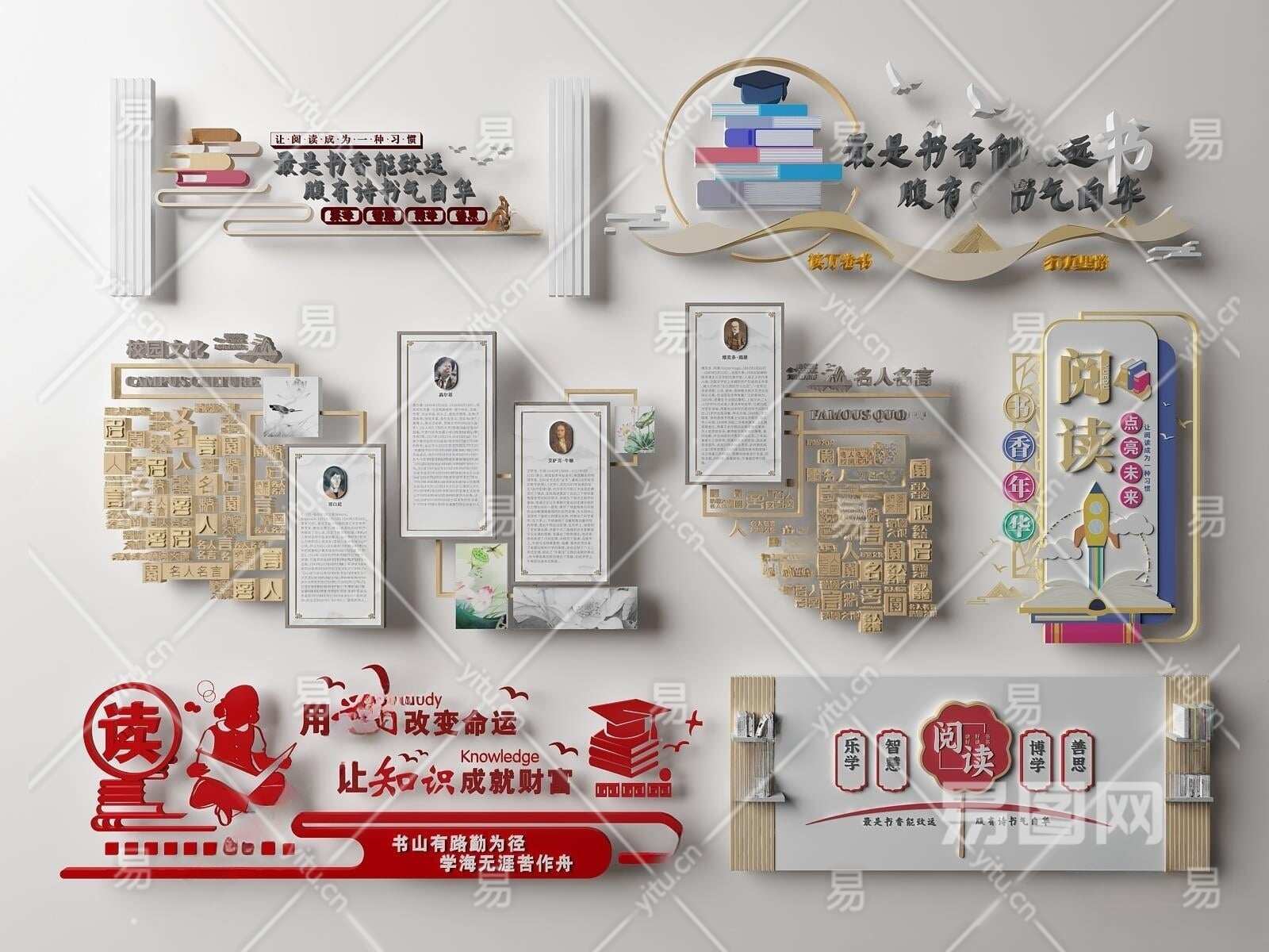 现代学校文化墙3D模型下载