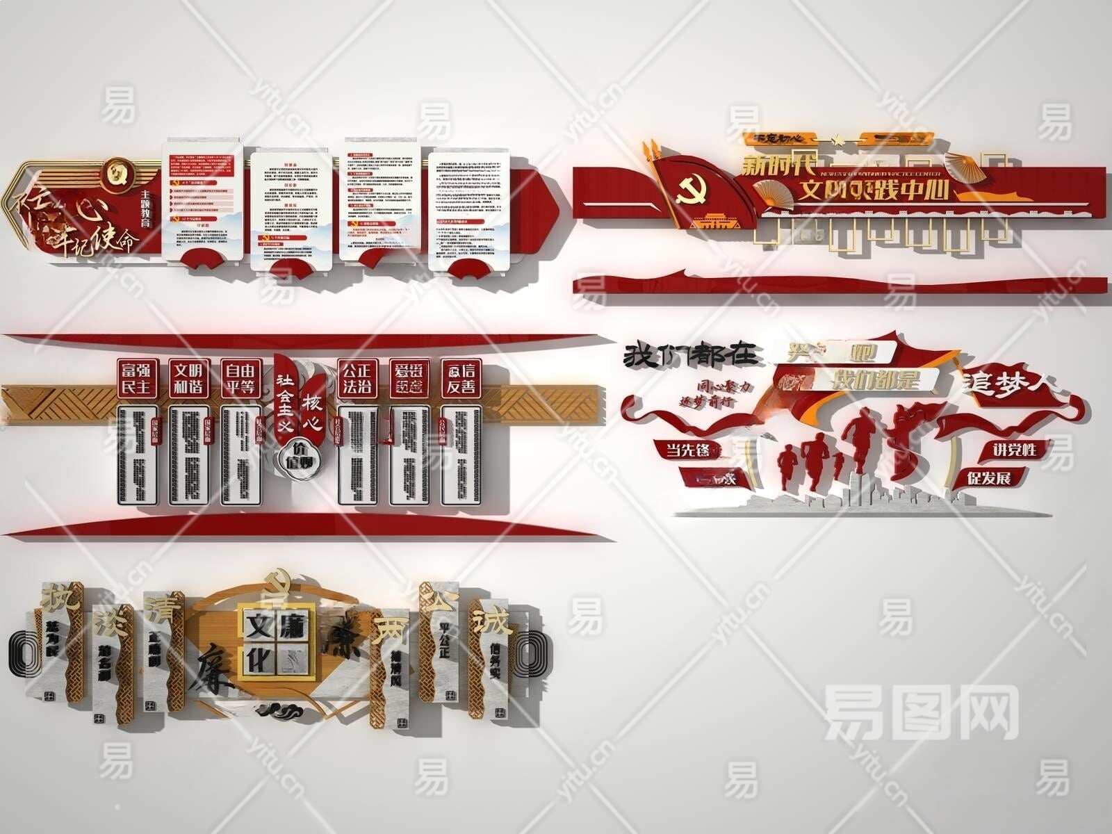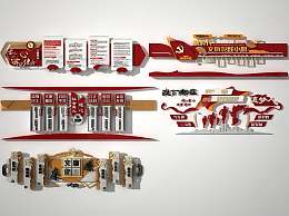 新中式党群服务中心文化墙3D模型下载