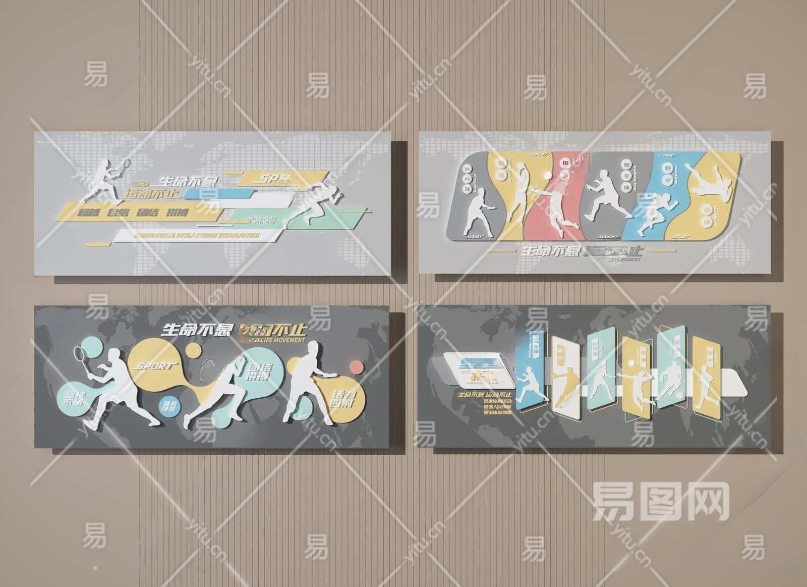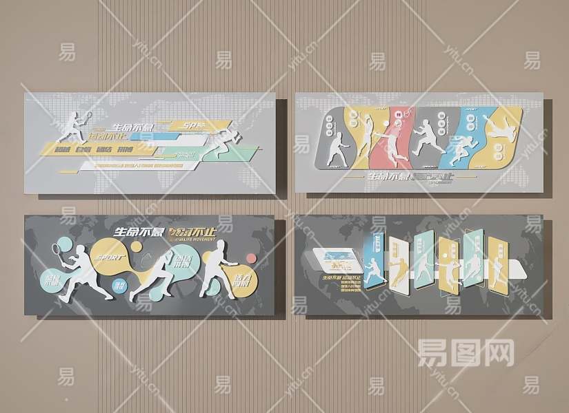 现代体育运动文化墙3D模型下载