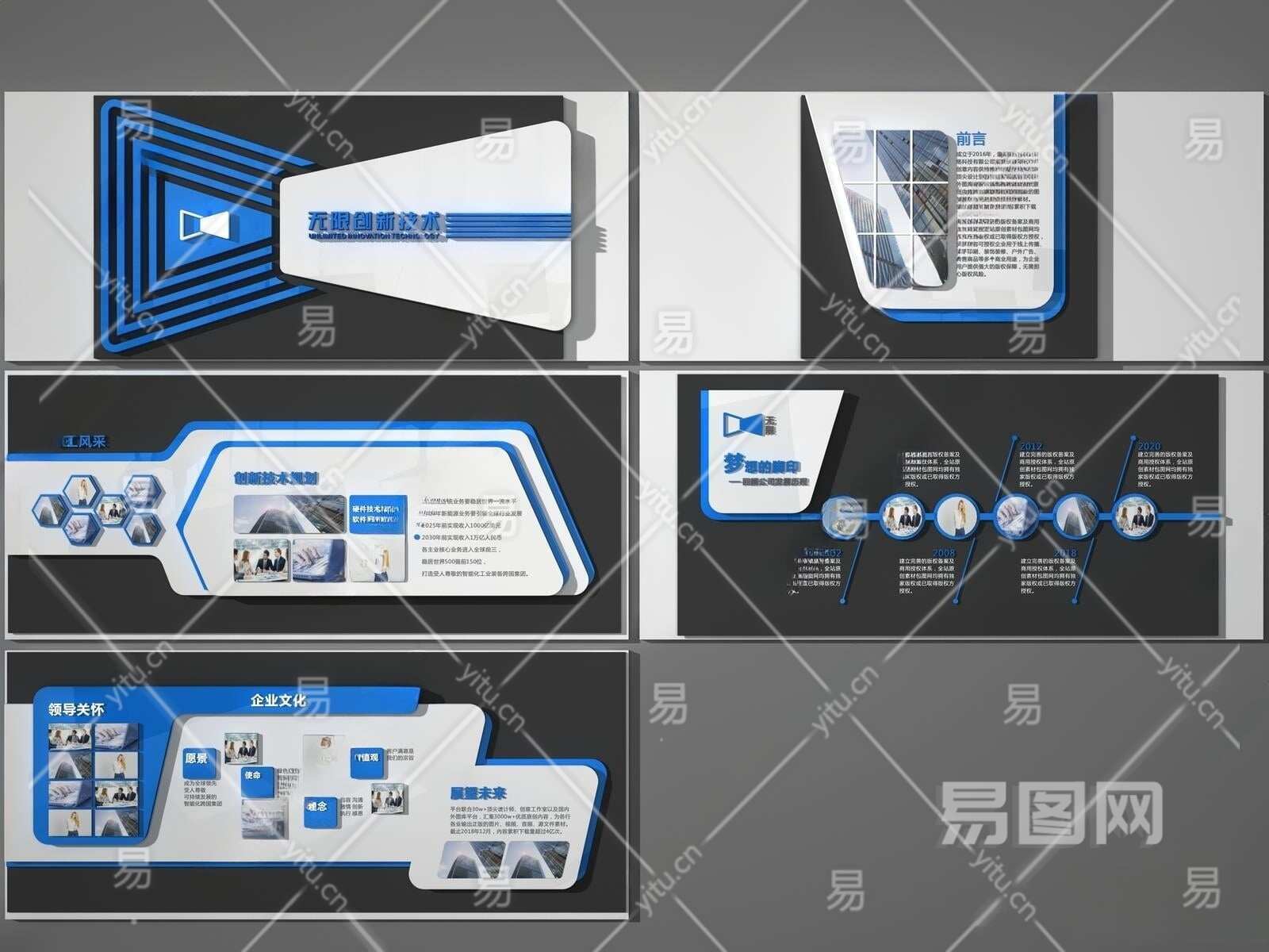 现代企业文化墙3D模型下载