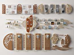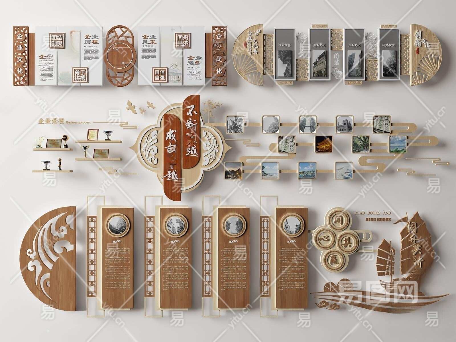 新中式企业文化墙3D模型下载