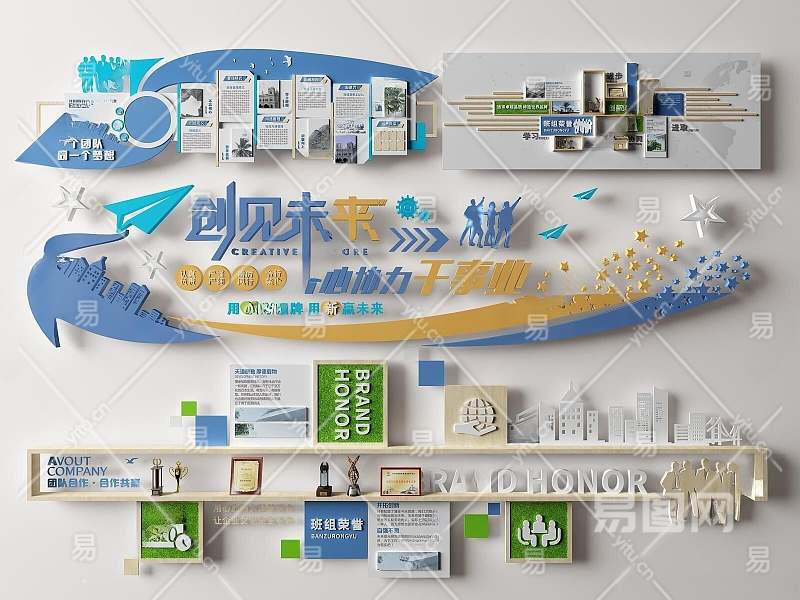 现代企业文化墙3D模型下载