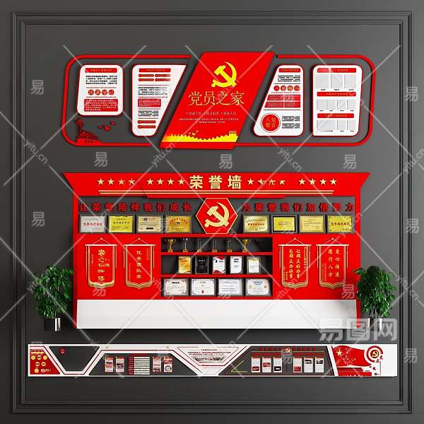 现代党建文化墙3D模型下载