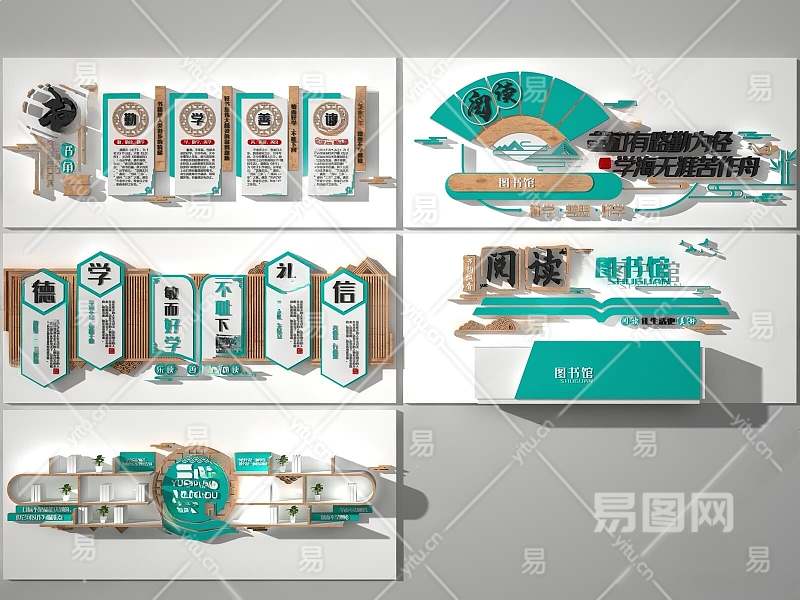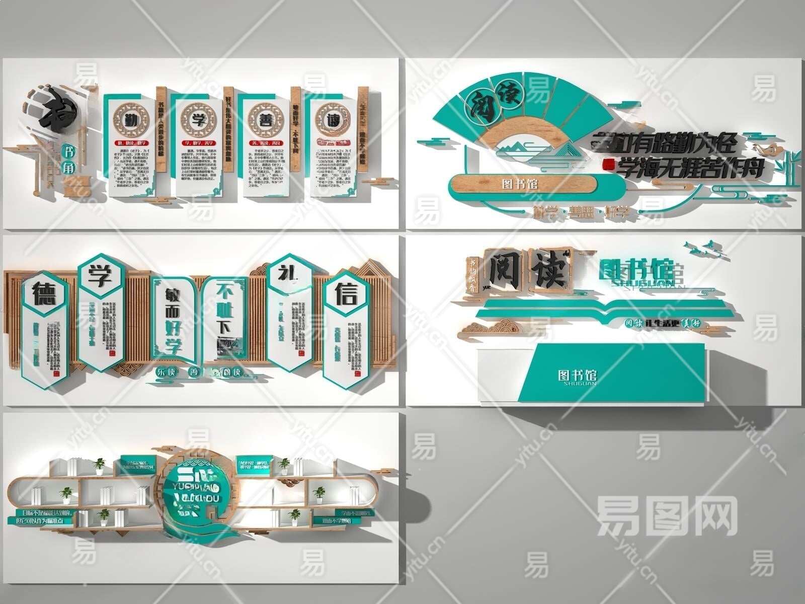 现代阅读室展馆文化墙3D模型下载